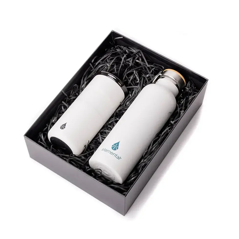Elemental Gift Set with insulated 25 oz bottle and 16 oz tumbler—sleek stainless steel, boxed for gifting.